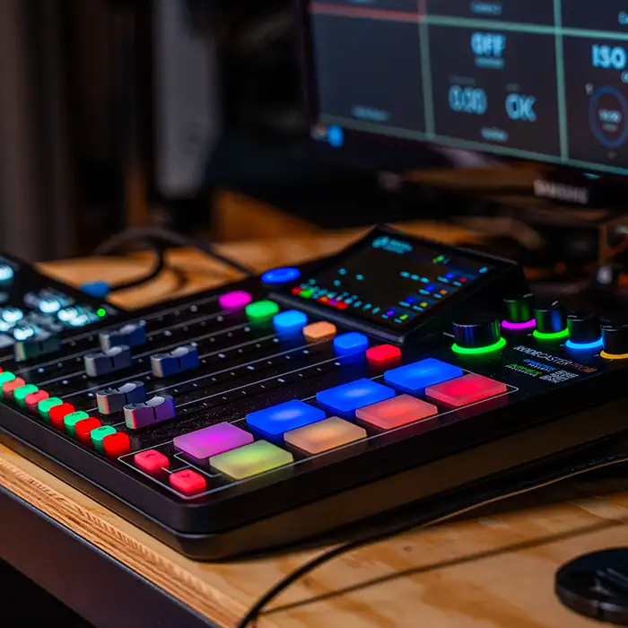 Nous vous proposons un large choix de configurations adaptées à tous vos projets de création de contenu. Format vertical (shorts, réels...), vidéo YouTube, podcast vidéo ou audio… Tout est réalisable à La Loge !
